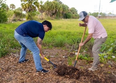 We operate a community nursery that cultivates 1,500 trees annually, supporting long-term canopy sustainability across Azalea Park and adjacent neighborhoods. Our conservation activities span both public spaces and private backyards, and prioritize native and climate-adapted Florida species alongside the culturally significant fruit trees that connect families to memory, food sovereignty, and place.
