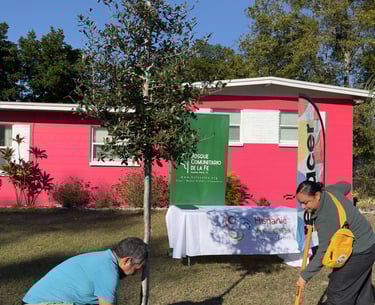 We operate Nuestros Bosques as our urban reforestation project under the Centro de Resiliencia initiative, funded through an $825,000 USDA Forest Service Urban and Community Forestry pass-through grant awarded in winter 2024. We operate in Azalea Park (32807) and adjacent neighborhoods. To date, we have planted more than 1,000 trees, generated $1.3 million in economic impact (a 154.6% return on investment), addressed 41% of the local tree canopy gap, served 100 households, and created 11 positions.