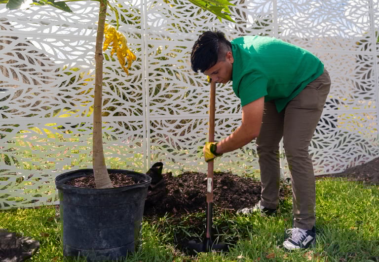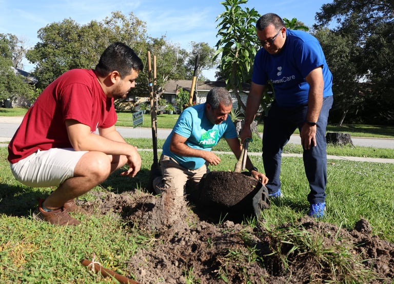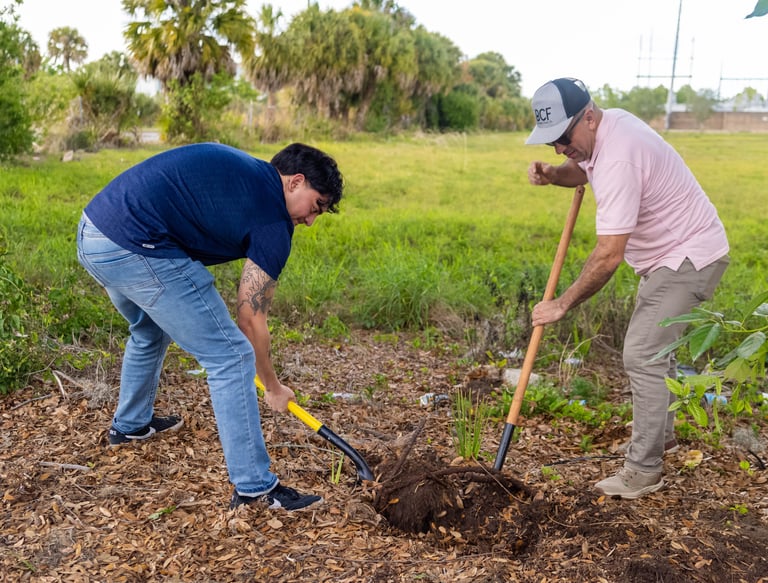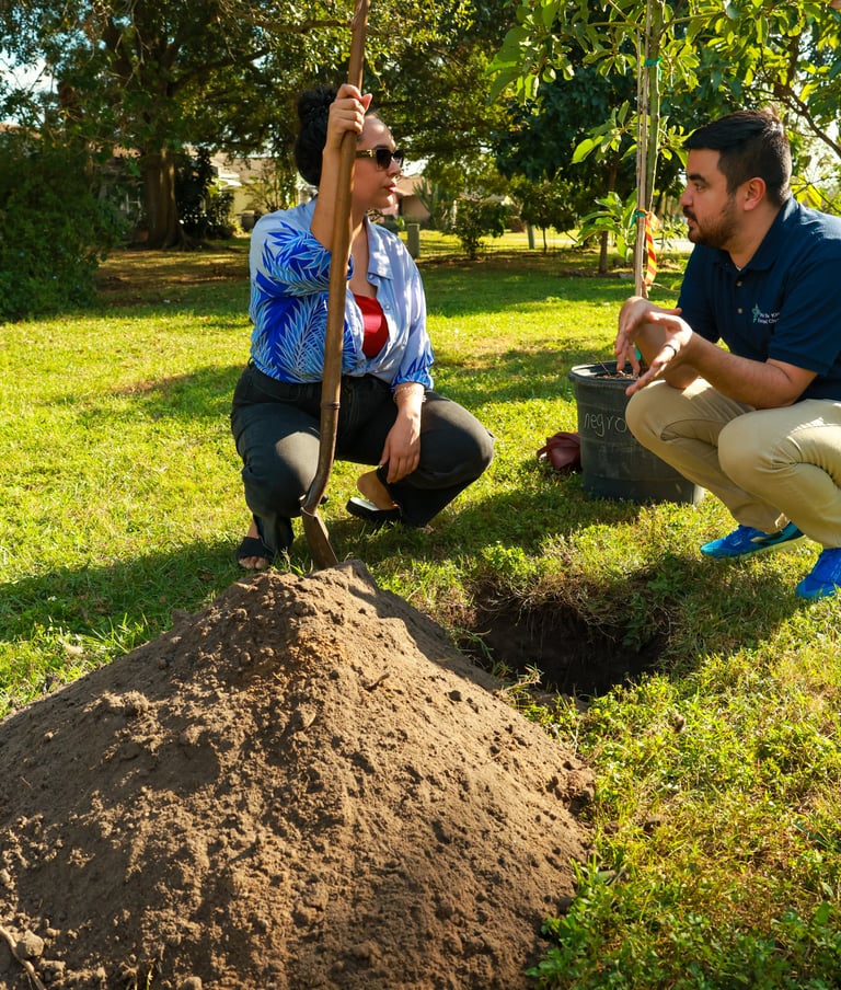 The full project plan calls for planting 2,090 trees and conserving 175 at-risk trees across the two-year project period. The species mix combines native and climate-adapted Florida species with culturally significant tropical fruit trees, including mango, avocado, and papaya, as well as oaks. We plant in both public spaces and private backyards, and we operate a community nursery that cultivates 1,500 trees annually to support ongoing sustainability. Nuestros Bosques is both an environmental project and a wellbeing project, integrating urban tree canopy work with community engagement and promoting the connection between mental wellness and nature in the communities we serve. For families navigating displacement, acculturation, and the heat burden that disproportionately affects under-canopied neighborhoods, the trees are cared for.